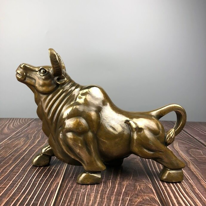 仿古黄铜抬头牛动物家居客厅摆件黄铜生肖牛摆设工艺礼品